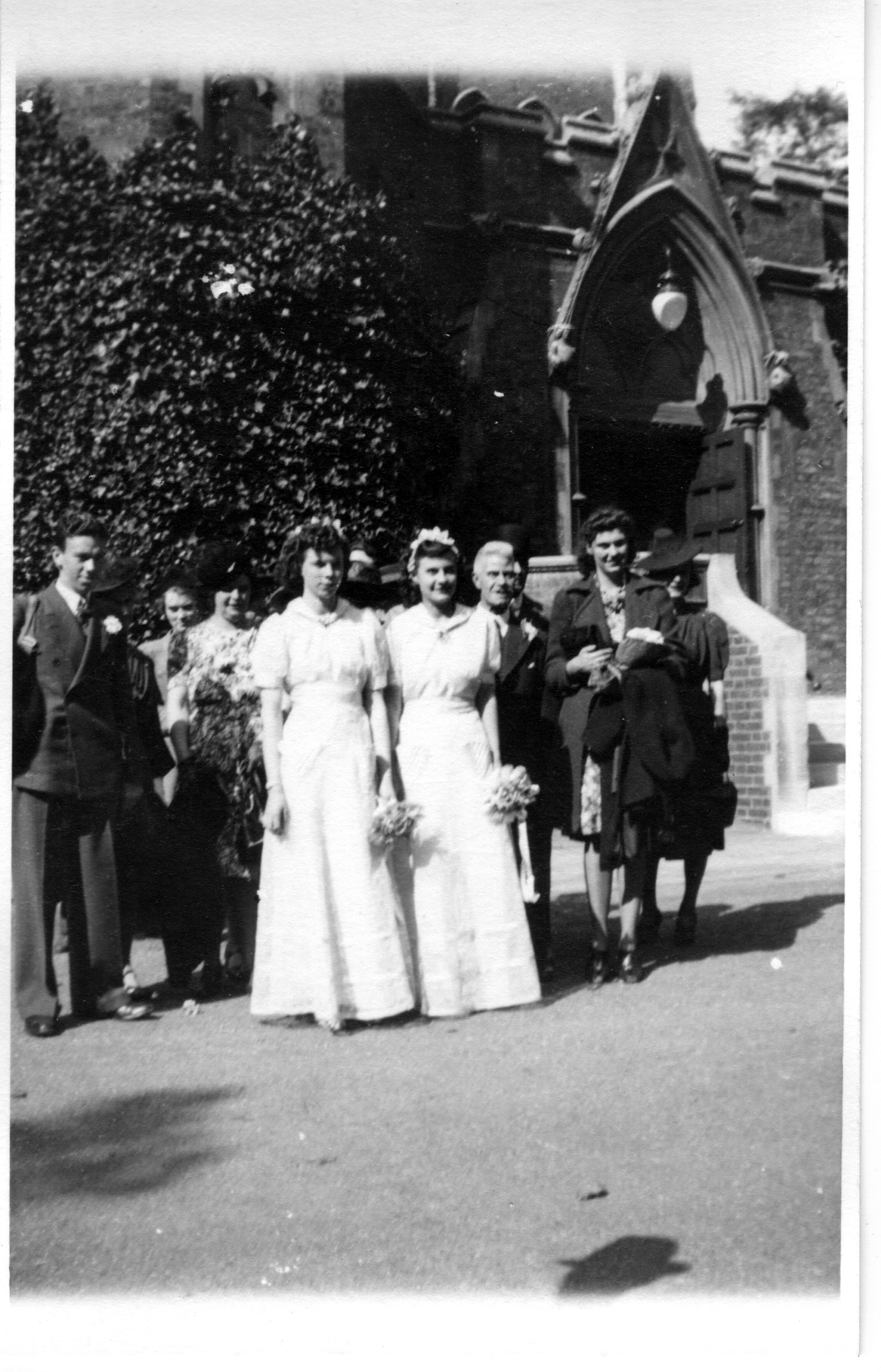 From Keith Williams 8 May 2009. Keith says that the photographer booked for the wedding didn't turn up, and the 4 photos here are the only ones that exist. He doesn't know who did take them. Haydn had a cast on his arm! One bridesmaid is Sylvia Roan, Doris's younger sister. The other is (EJWilliams thinks) Maudie. Charles Roan, Doris's father, is the chap with the moustache to the right of the bridesmaids.